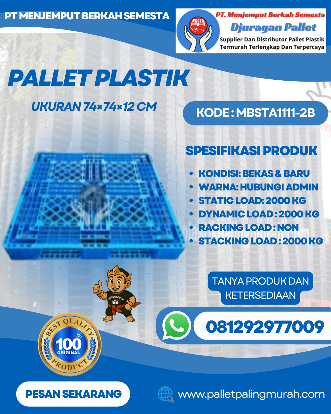 Kuantitas Pallet Plastik Baru & Bekas 110x110x12 [MBSTA1111-2B]