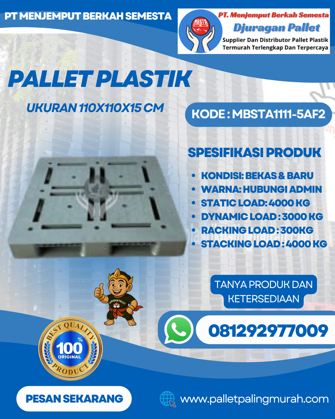 Pallet Plastik Baru & Bekas 110x110x15 [MBSTA1111-5AF2]