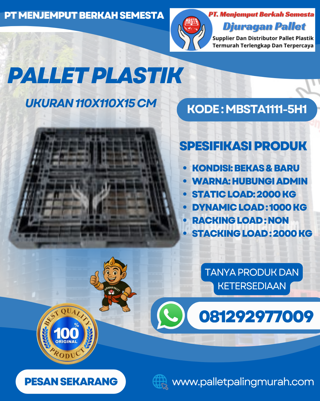 Kuantitas Pallet Plastik Baru & Bekas 110x110x15 [MBSTA1111-5H1]
