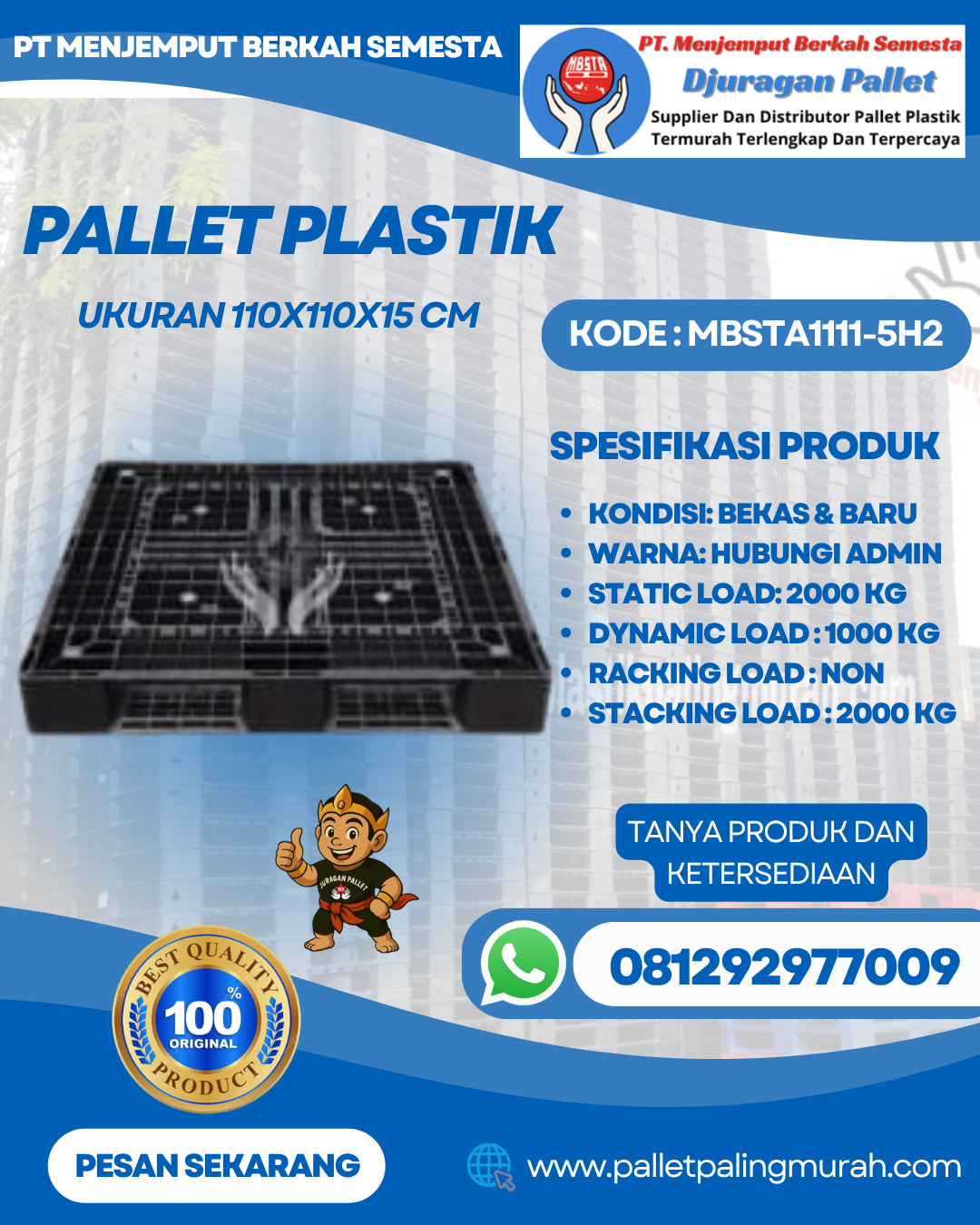 Kuantitas Pallet Plastik Baru & Bekas 110x110x15 [MBSTA1111-5H2]