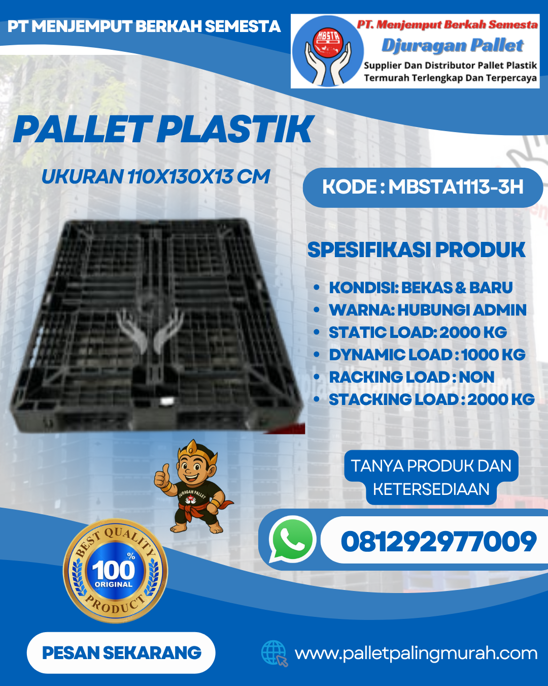 Pallet Plastik Baru & Bekas 110x130x13 [MBSTA1113-3H]