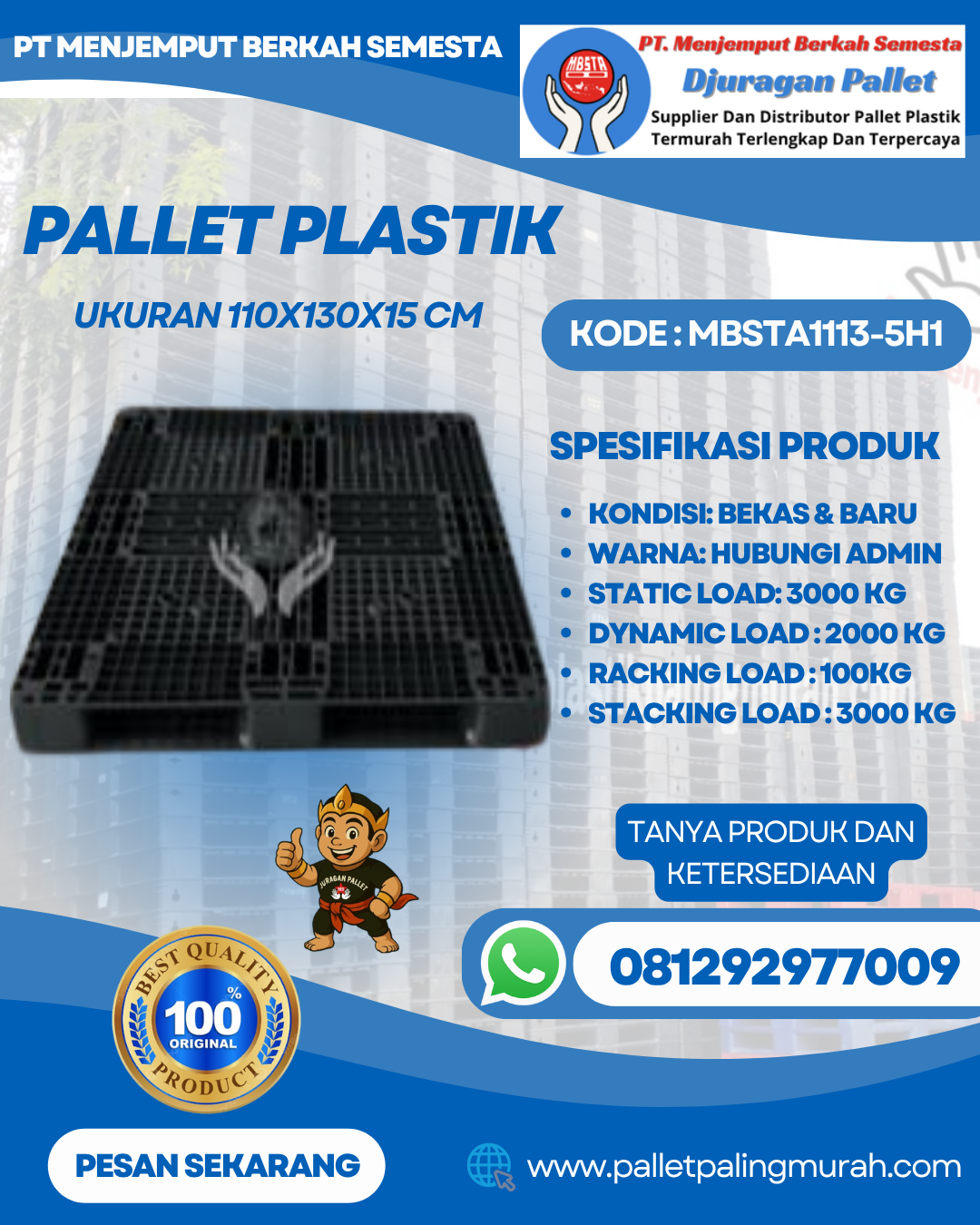 Pallet Plastik Baru & Bekas 110x130x15 [MBSTA1113-5H1]