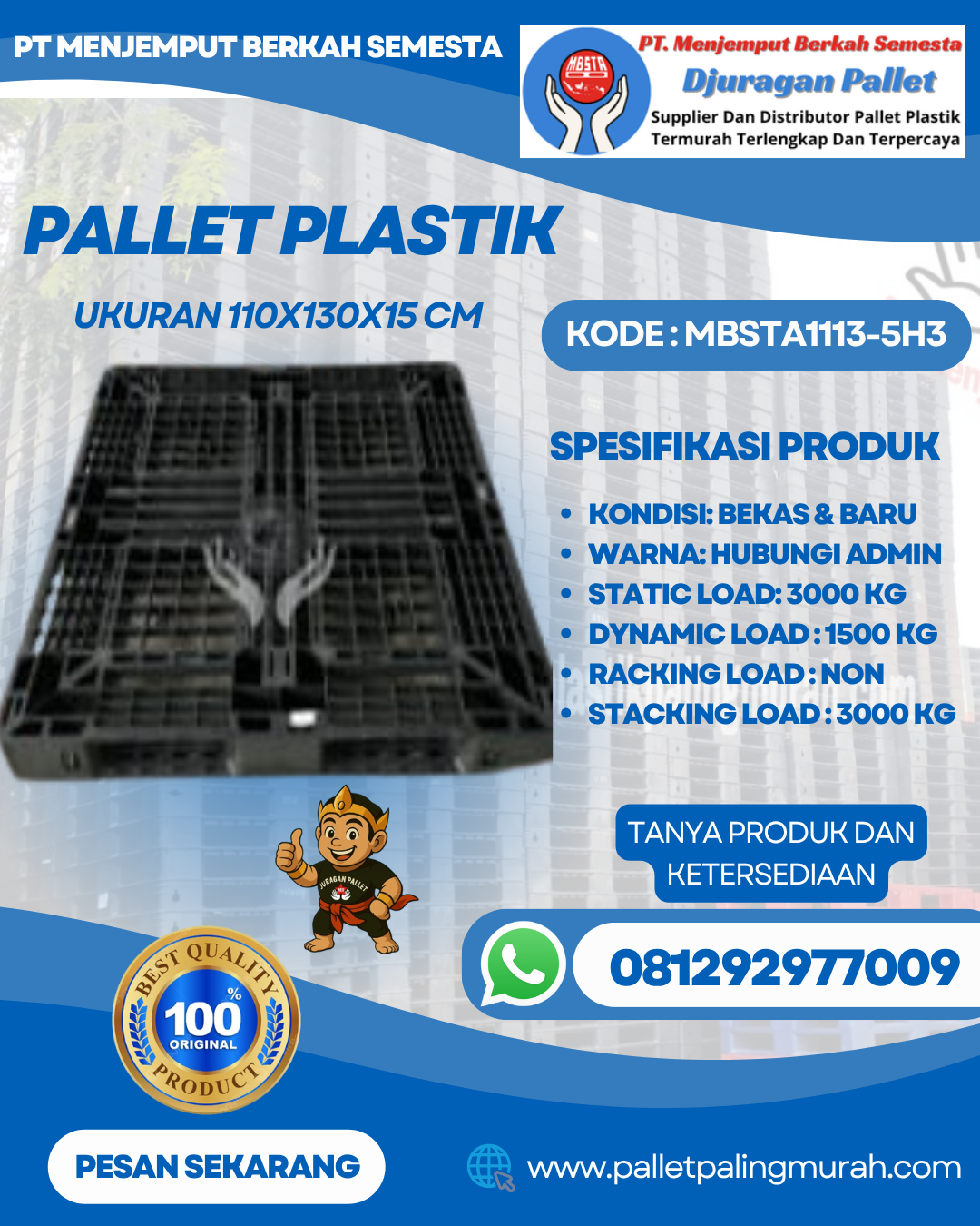 Pallet Plastik Baru & Bekas 110x130x15 [MBSTA1113-5H3]